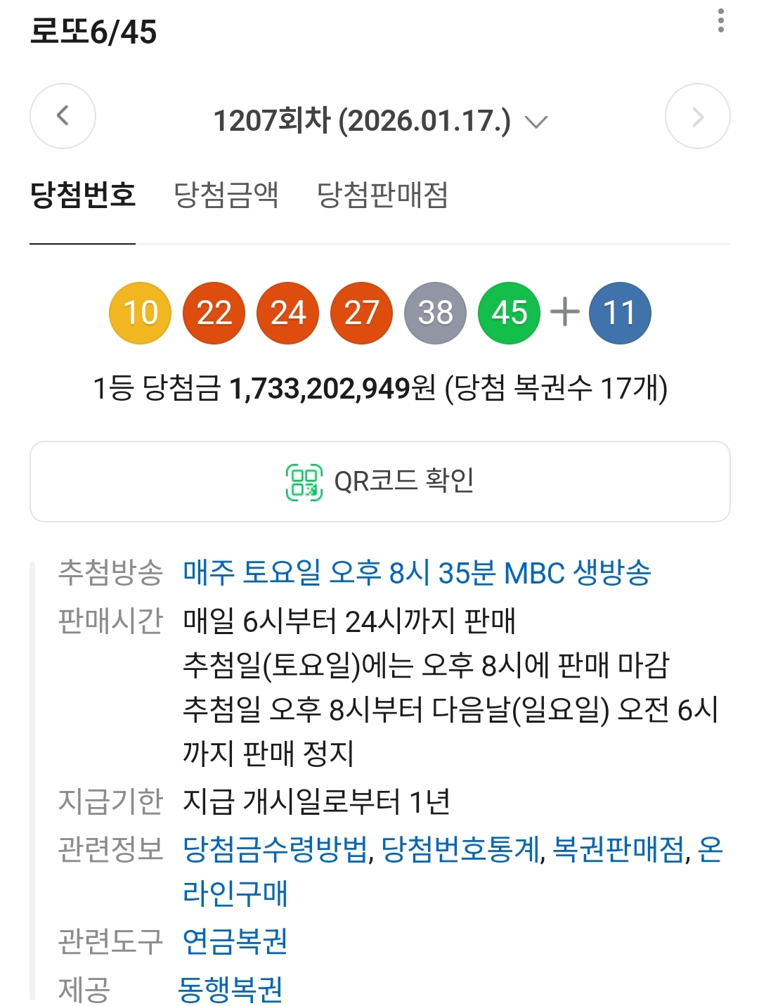 지난 1207회의 가장 큰 특징은 **단번대 전멸(10번 스타트)**과 **20번대 폭발(22, 24, 27)**이었습니다.