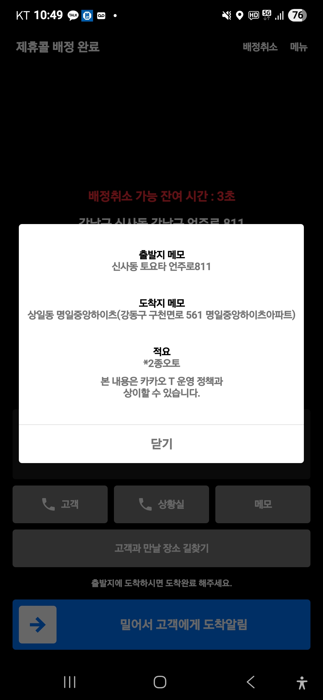 금호역까지 뛰듯 걸어가 신사역 콜을 잡았는데,